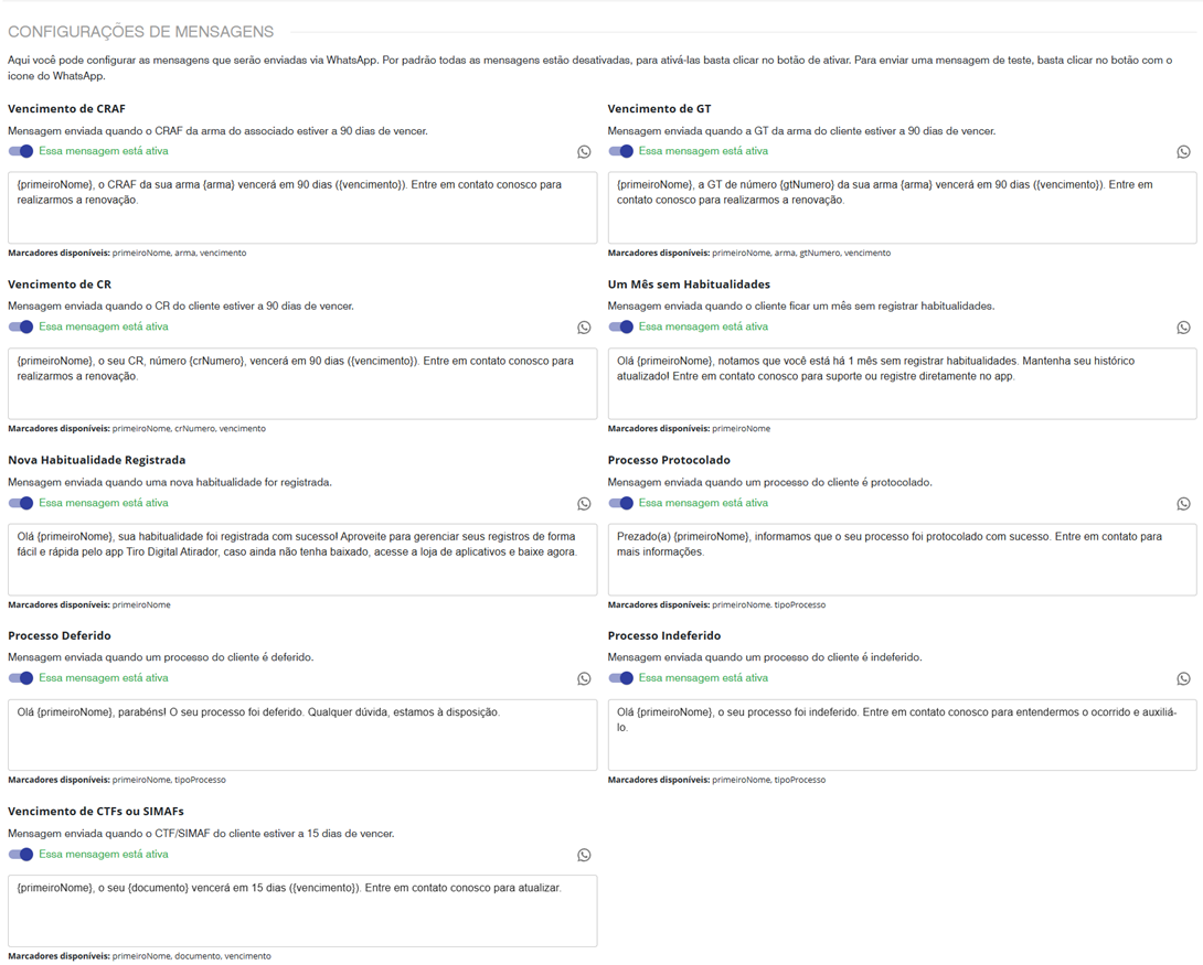 3. Marcadores disponíveis para essa mensagem: eles serão substituídos automaticamente pelos dados do cliente.