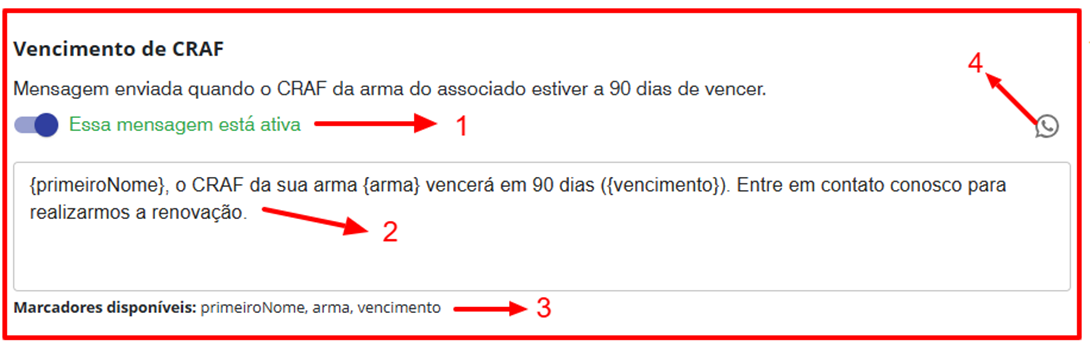 1. Habilitar/Desabilitar o envio da mensagem.