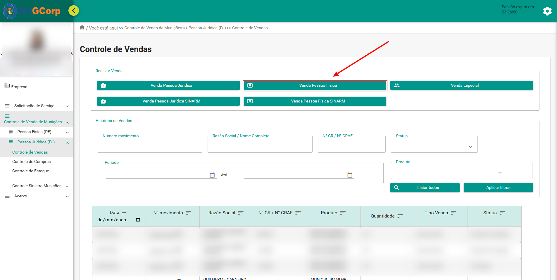 - Foi realizada a venda de 100 unidades da munição A, com registro de empenho no SisGCorp.